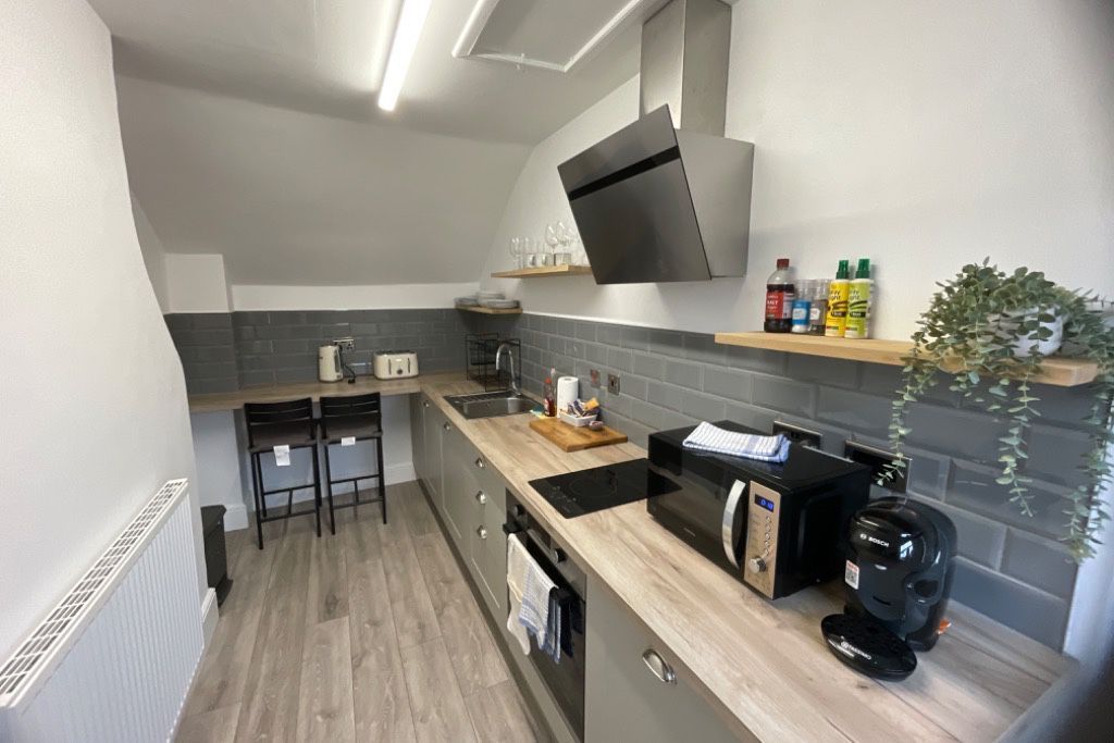 As you enter the apartment you are greeted with the lounge. The beams remain and are a feature I genuinely love! There is a smart TV. You are welcome to use Netflix and other streaming apps, if you have accounts for these. There is also a sofa bed, that can be made into a double bed, meaning that the apartment sleeps 4 people in total.