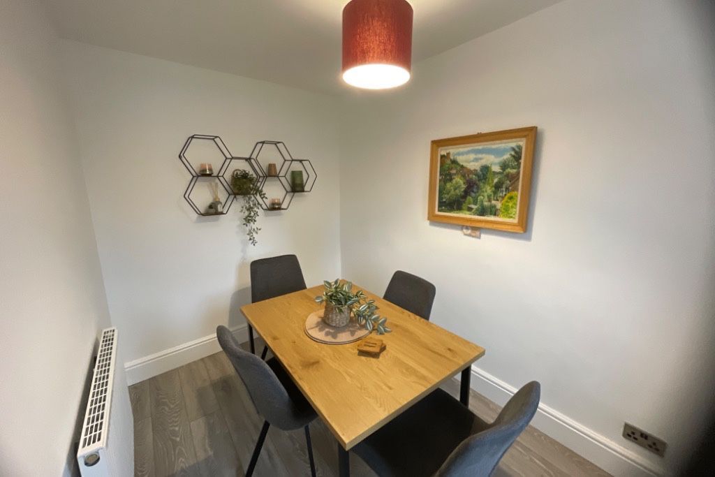 There is also a stylish dining room for four people, perfect for when you want a sit-down meal and a chat about your day.